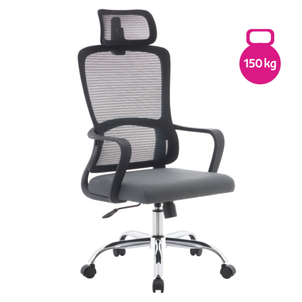 Kancelárske kreslo, čierna/sivá/chróm, nosnosť 150 kg, RANDY