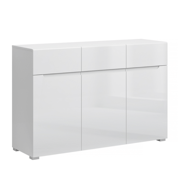 Komoda 3D3S, biela/biely extra vysoký lesk HG, JOLK