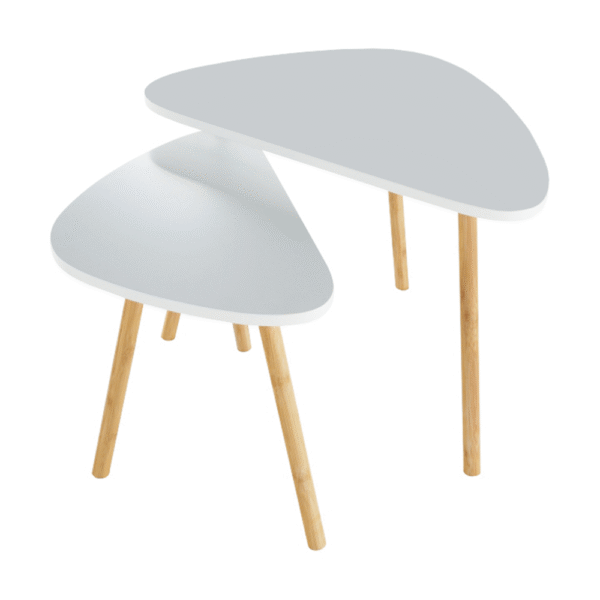 Konferenčné stolíky, set 2 ks, biela/prírodná, BISMAK