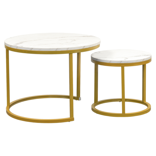 Konferenčné stolíky, set 2 ks, zlatá/imitácia mramoru, DEVNET 2 NEW