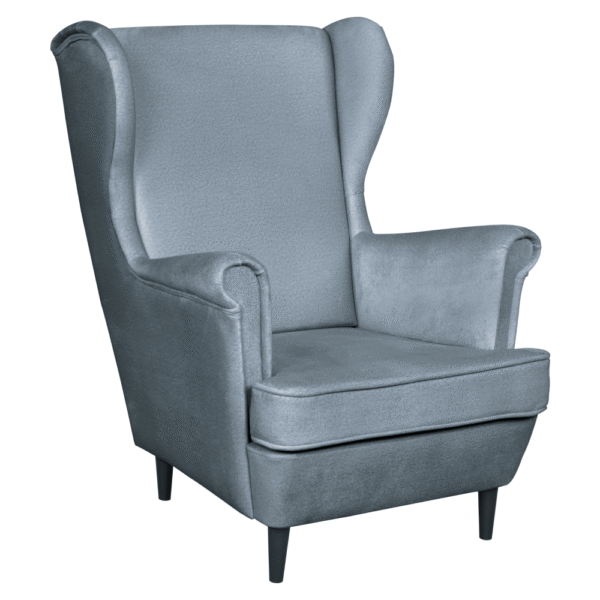 Kreslo ušiak, sivomodrá/wenge, LEFO