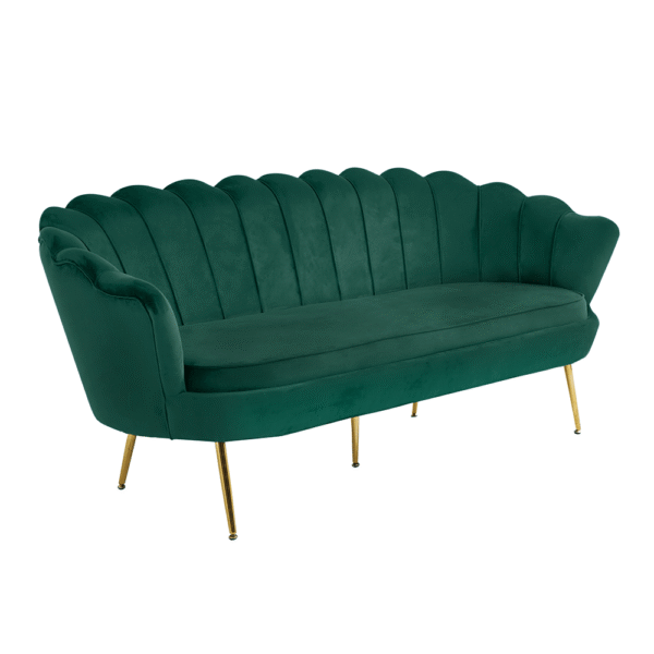 Luxusná pohovka, 3-sed, smaragdová Velvet látka/chróm zlatý, štýl Art-deco, NOBLIN