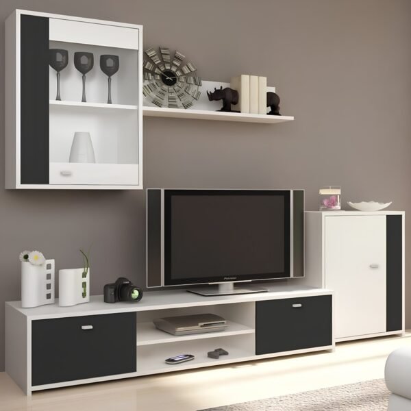 Obývacia stena, biela/čierna extra vysoký lesk HG, LEO