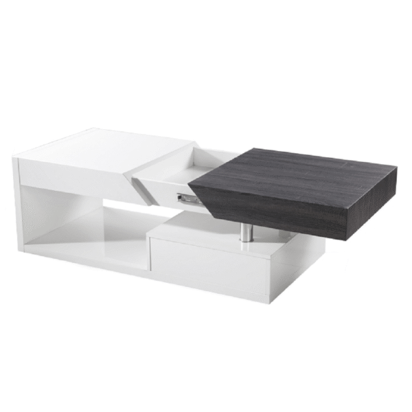 Konferenčný stolík, biely lesk/sivočierna s kresbou dreva, MELIDA