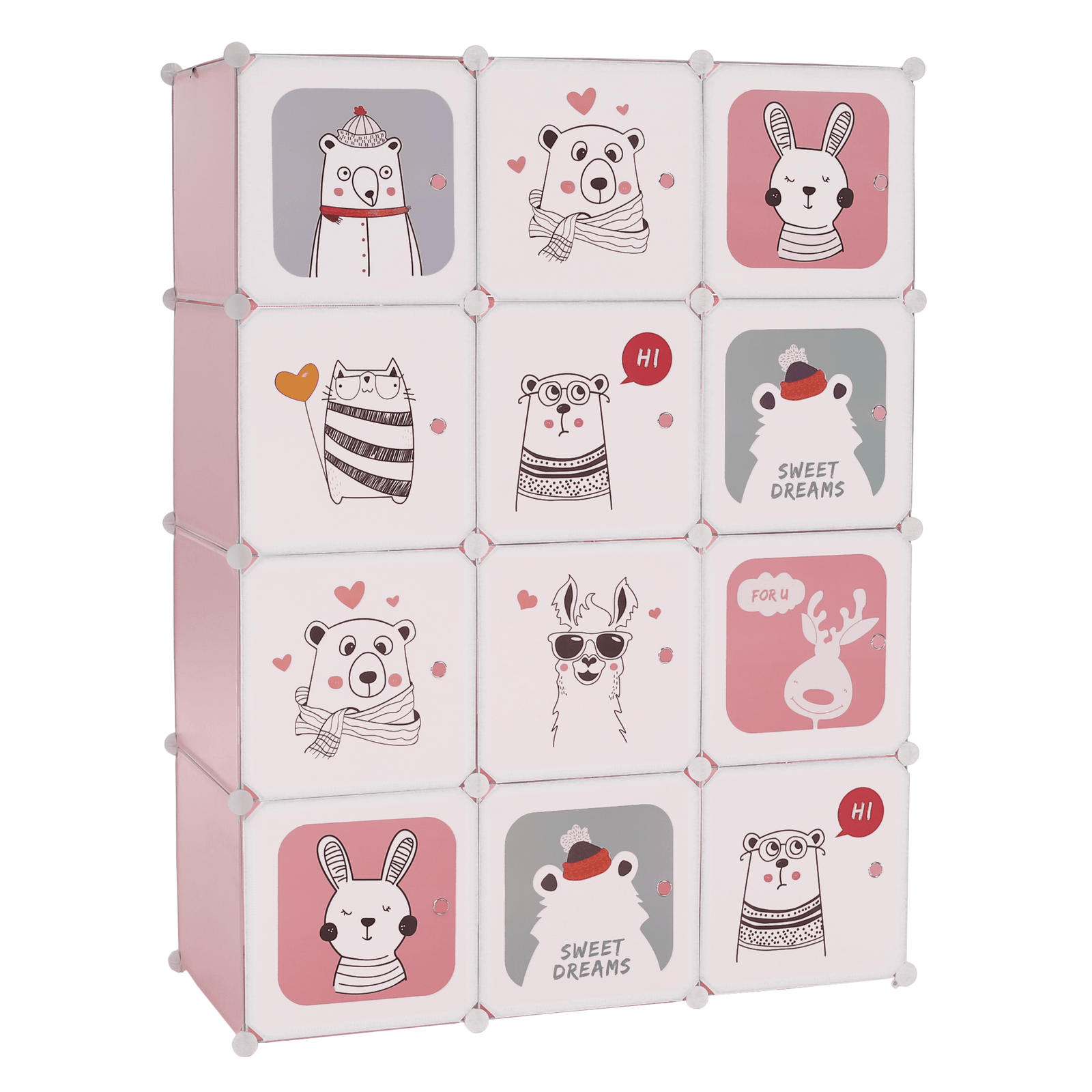Detská modulárna skriňa, ružová/detský vzor, NURMI