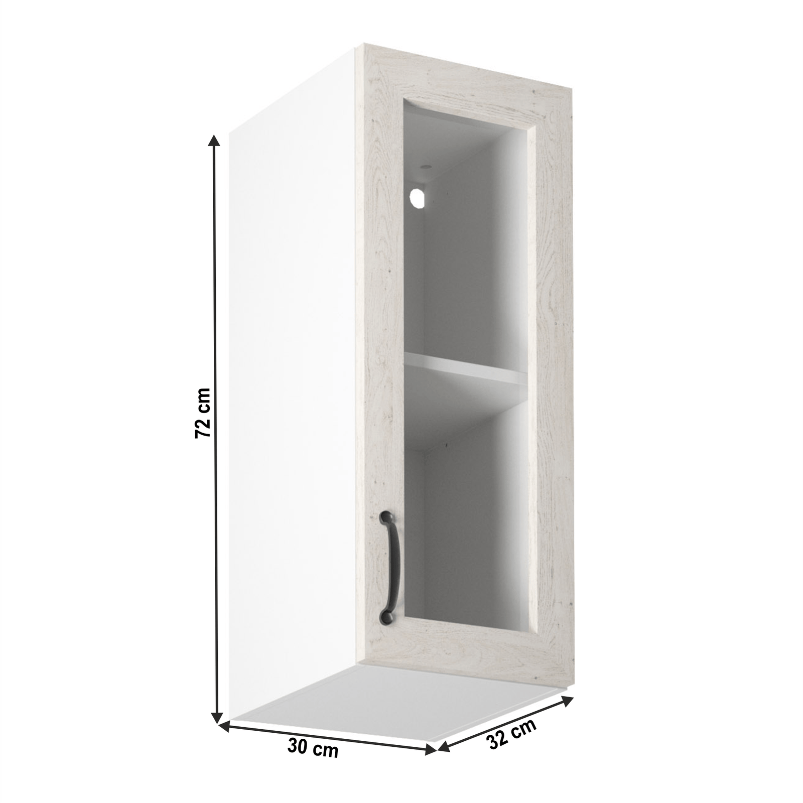 Horná skrinka so sklom, biela/sosna nordická, pravá, ROYAL G30S