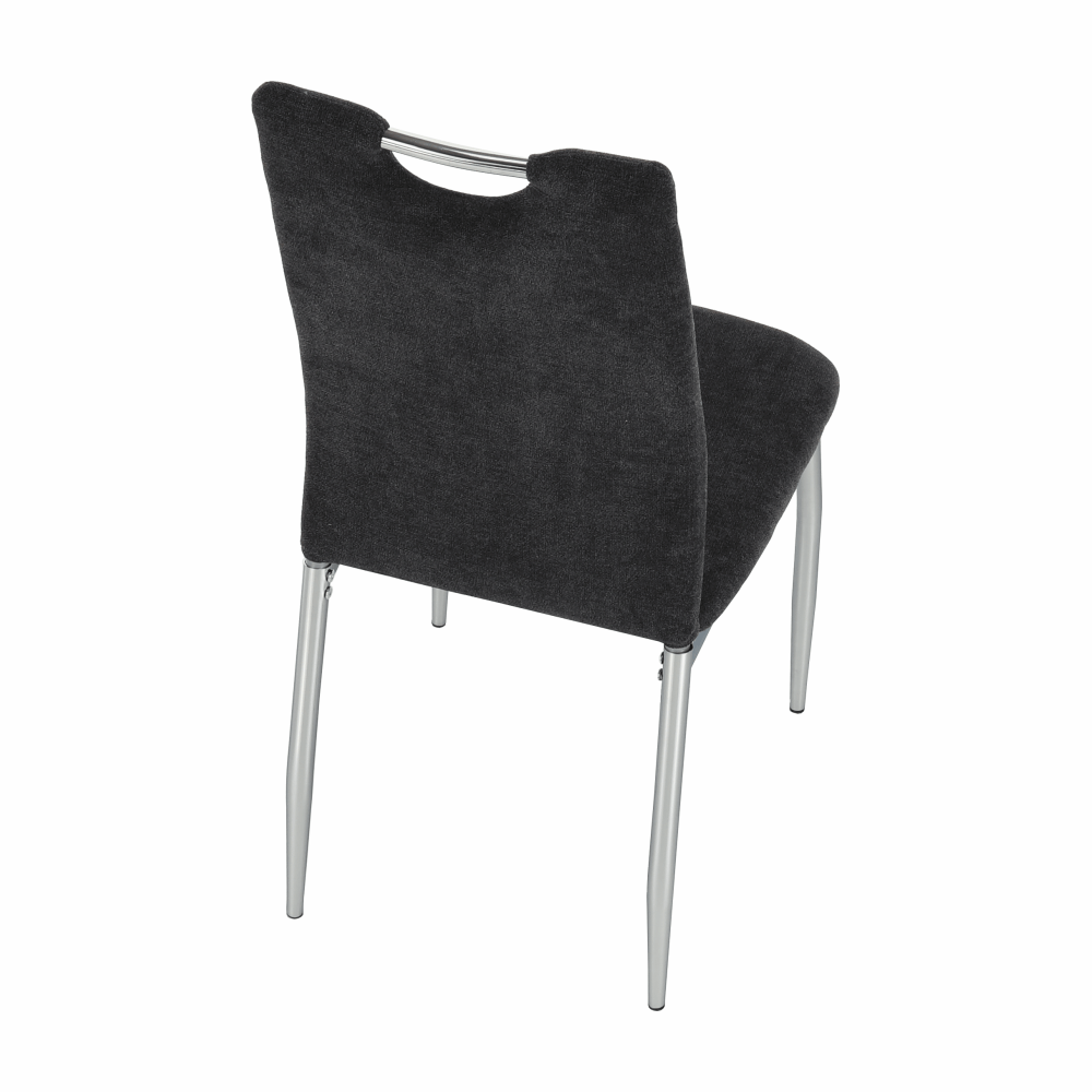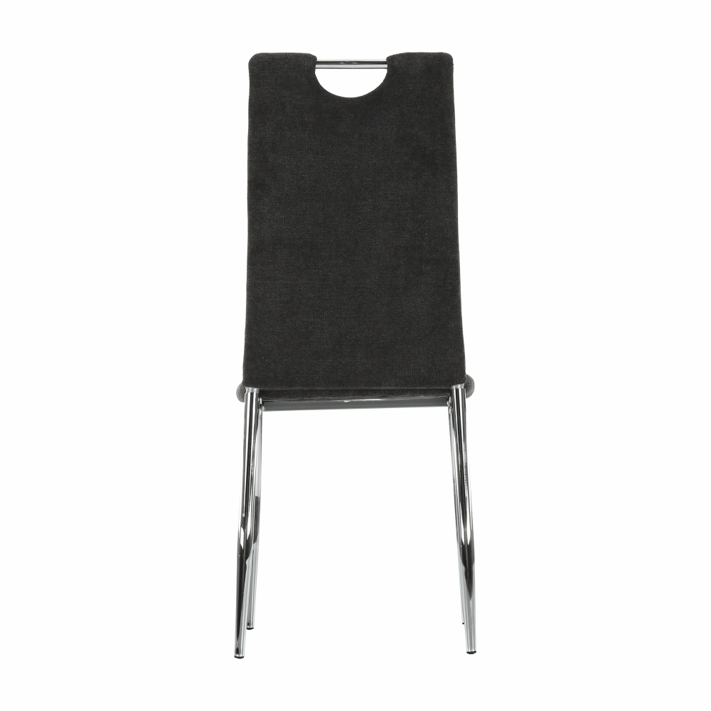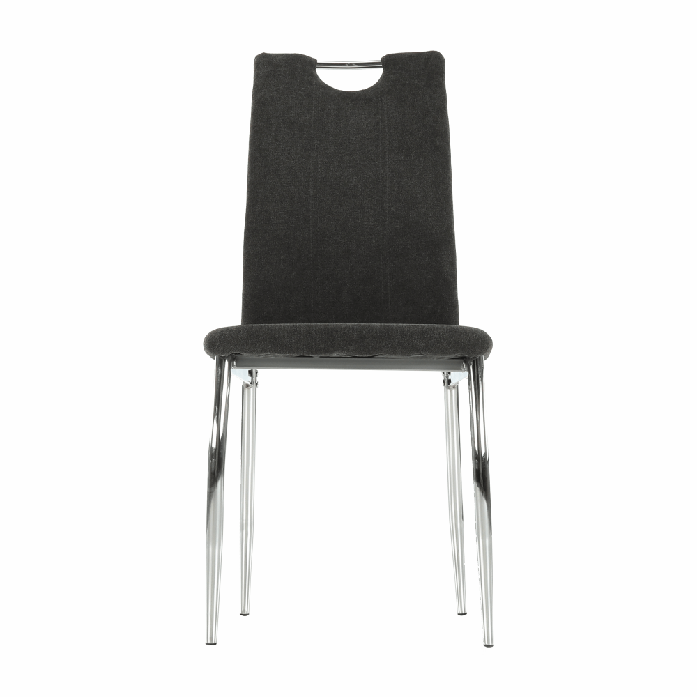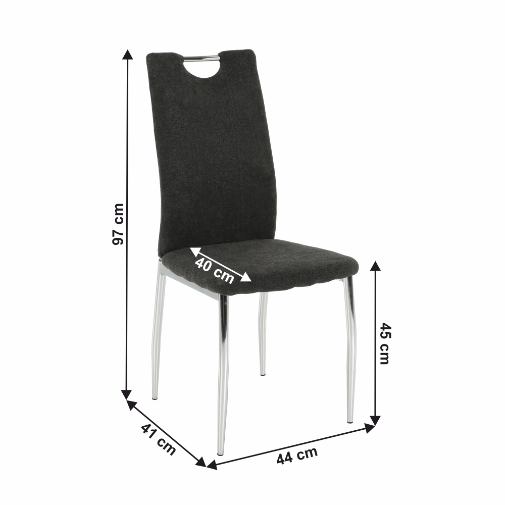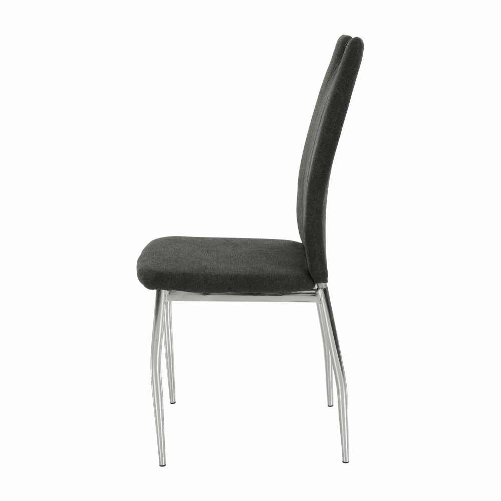 Jedálenská stolička OLIVA NEW vo farebnom prevedení hnedosivej látky s chrómovanými nohami.