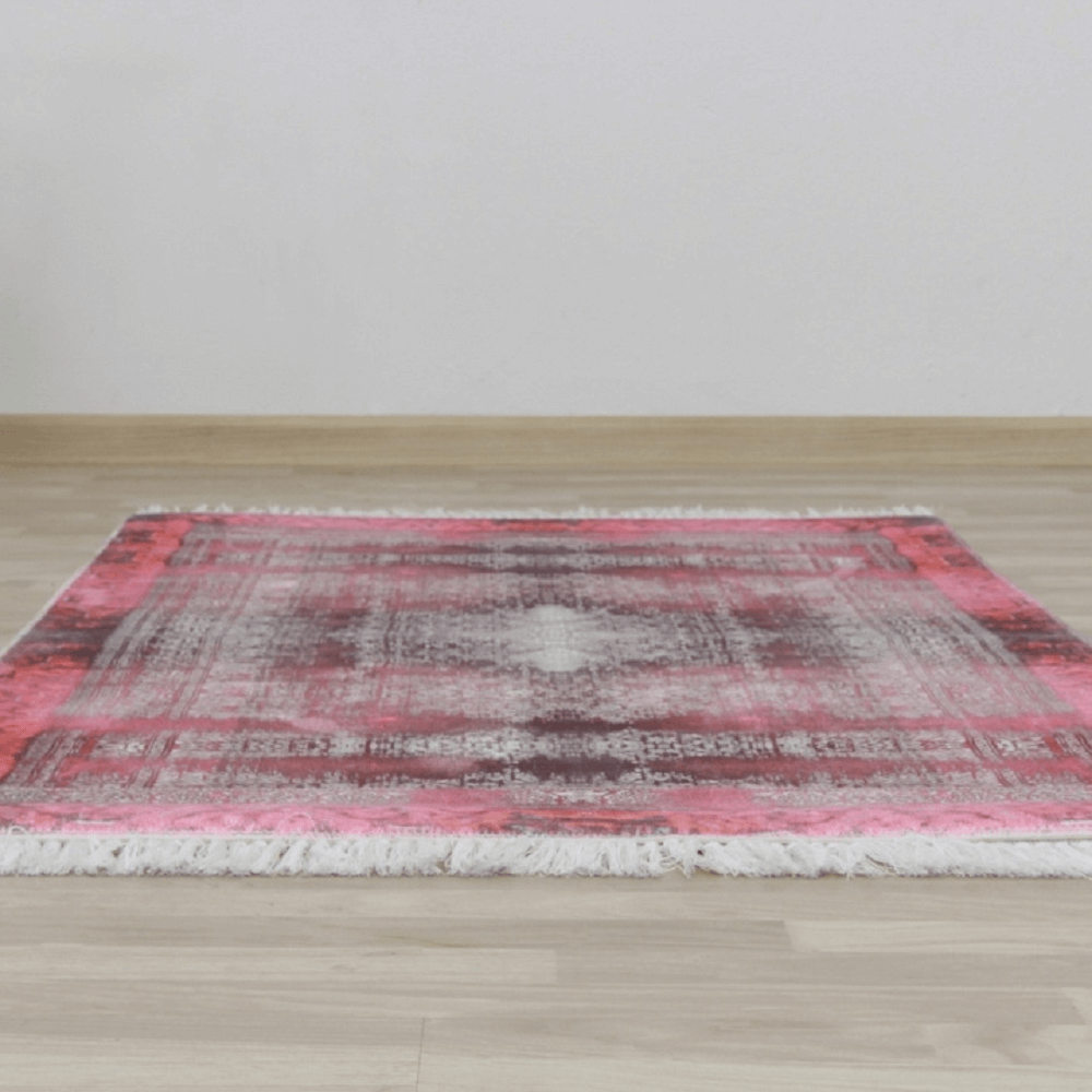 Koberec VELDAR so strapcami. Vyrobený zo 100% polyesteru vo farebnom prevedení vínovočervená.