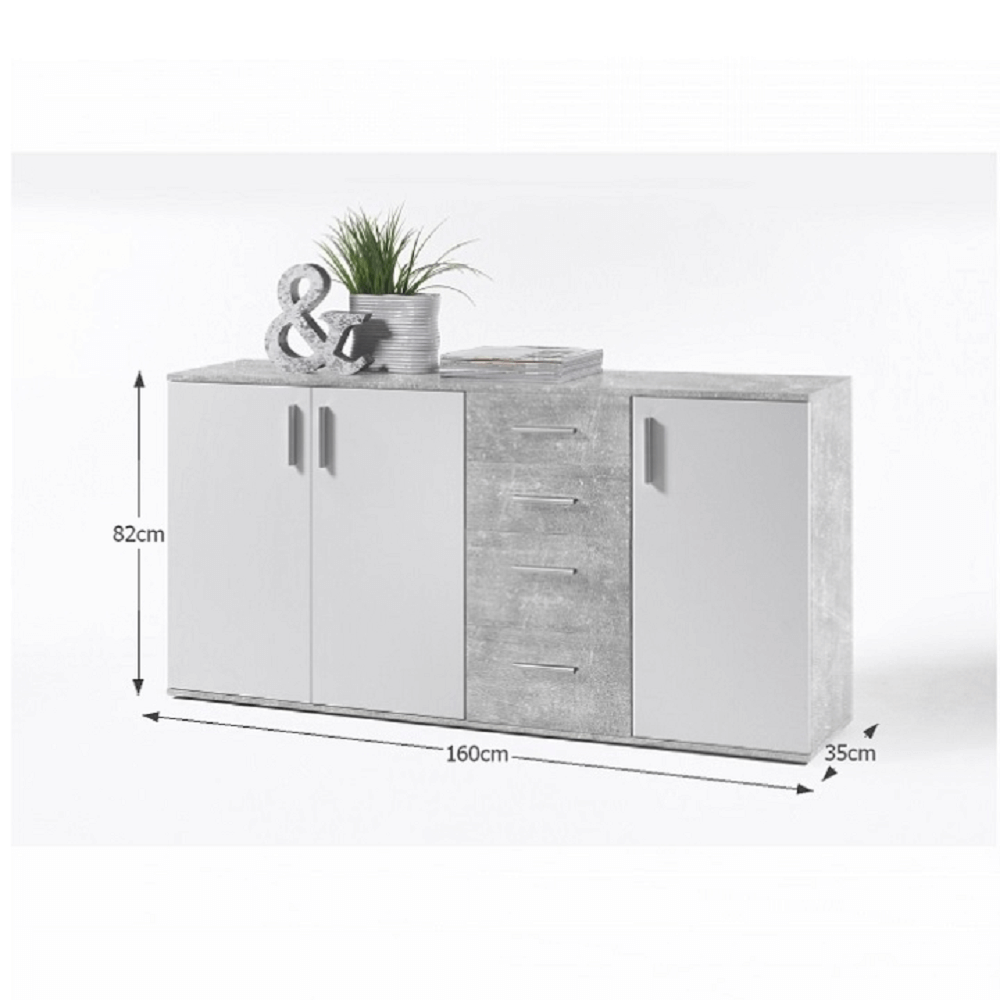 Komoda, biela/betón, POPPY 3