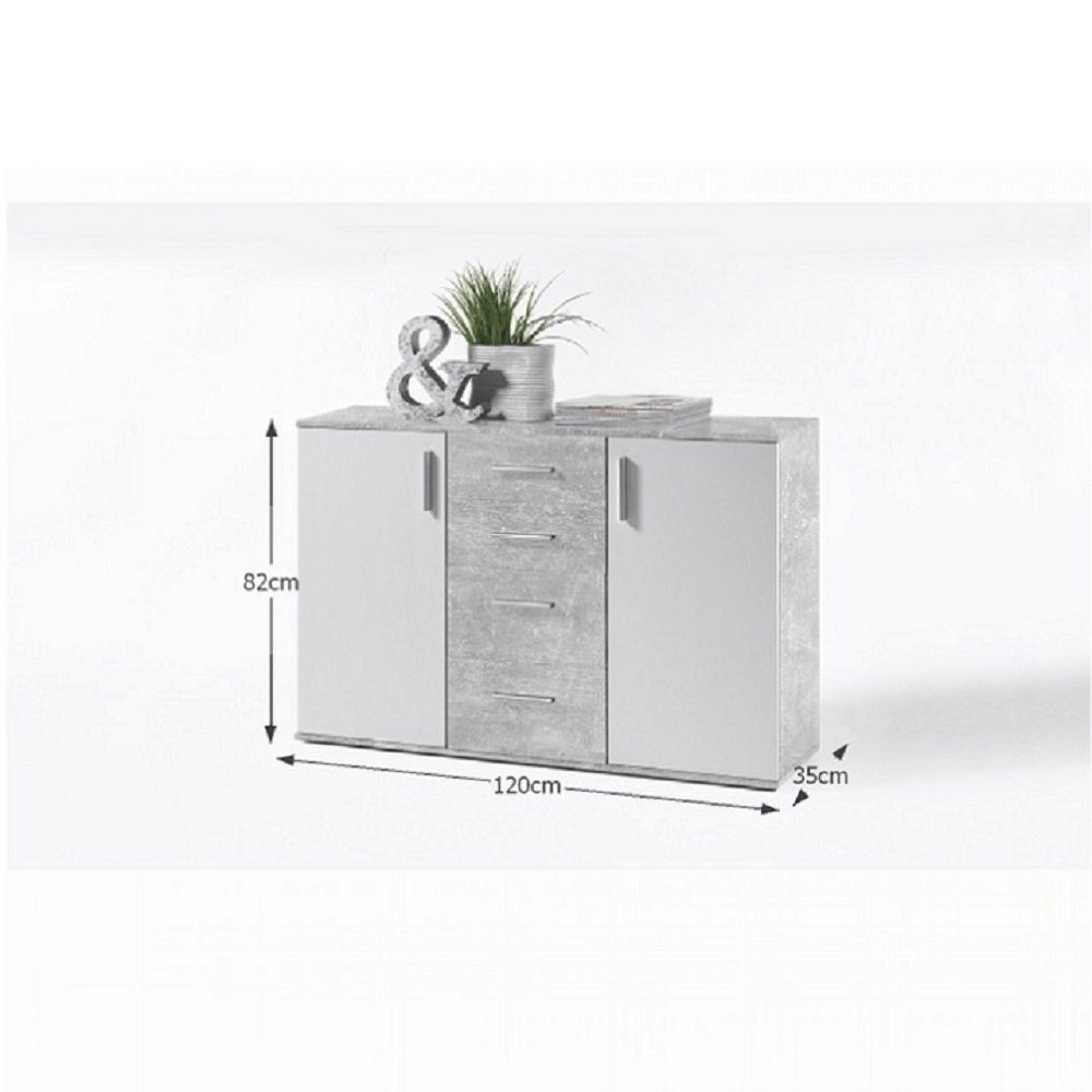 Komoda, biela/betón, POPPY 5