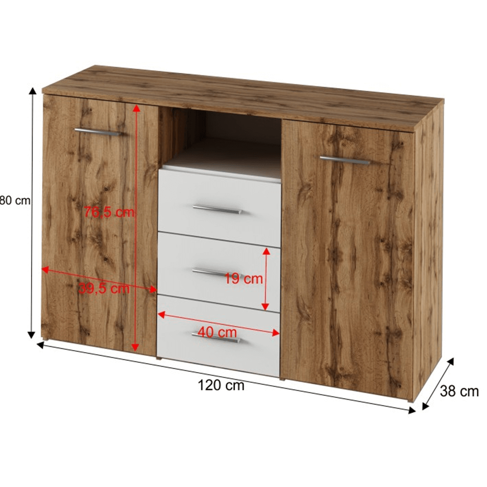 Komoda, dub wotan/biela, GABRIELA