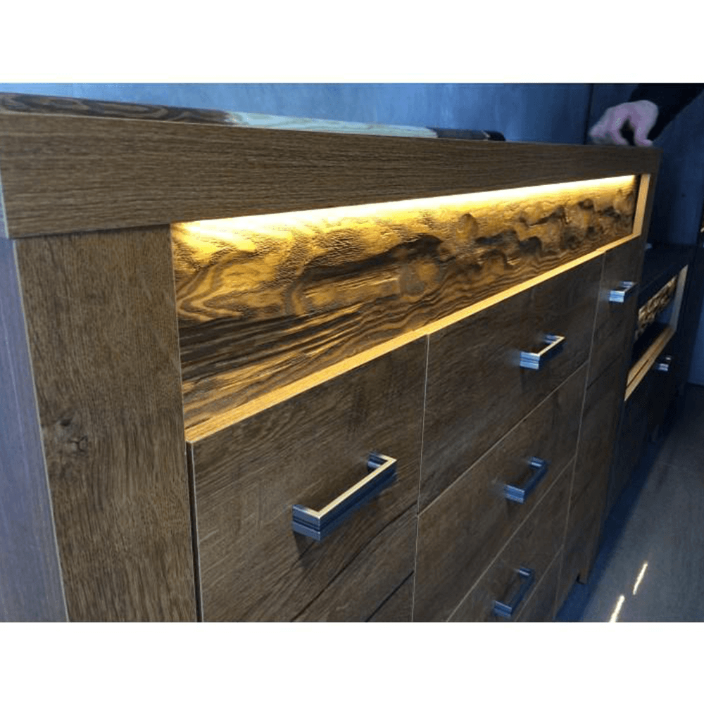 Korpus hrubý až 48 mm, hrúbka materiálu zvyšné časti: 16 mm, materiál DTD laminovaná, ABS hrany.