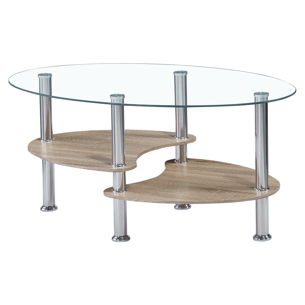 Konferenčný stolík, oceľ/číre sklo/dub sonoma, PANTY 2 NEW