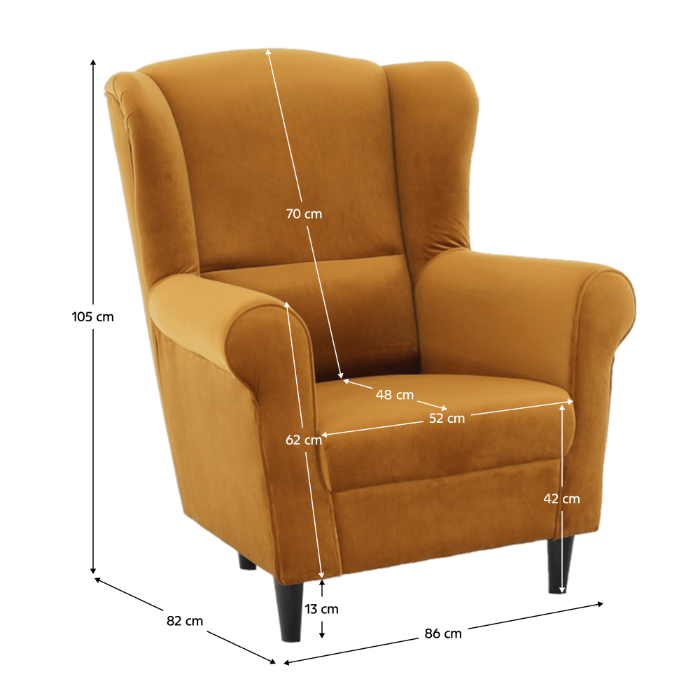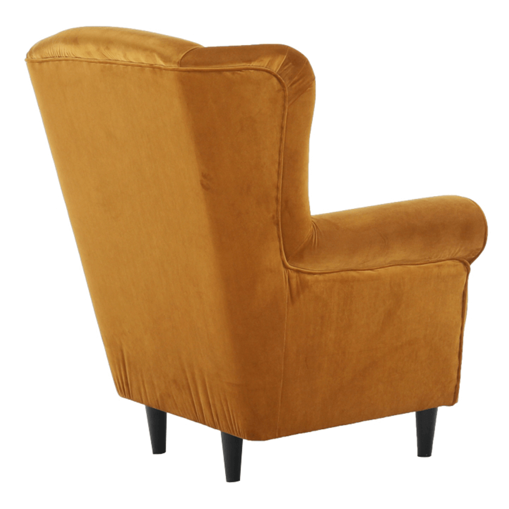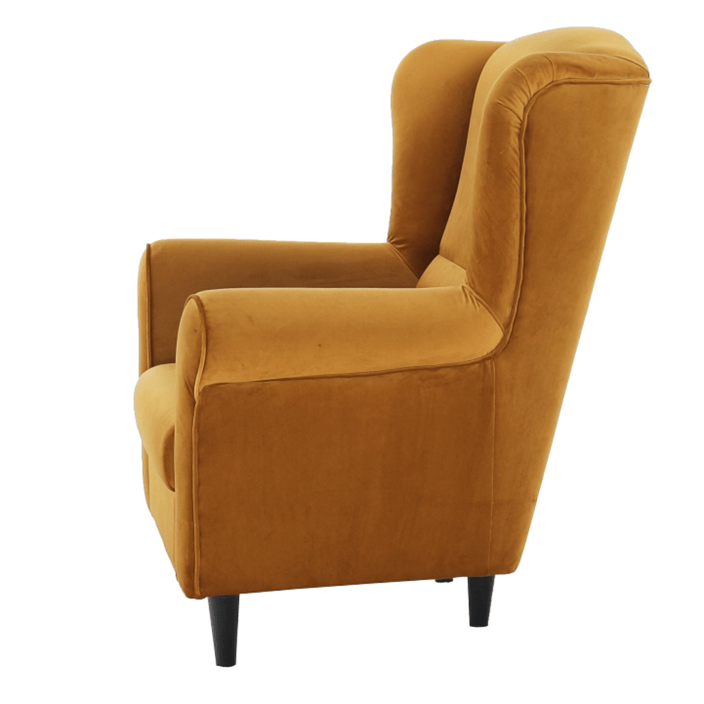 Kreslo-ušiak CHARLOT vo farebnom prevedení látky riviera horčicová.