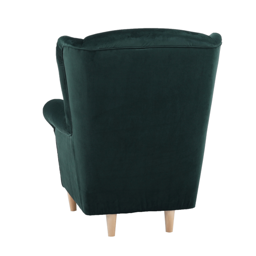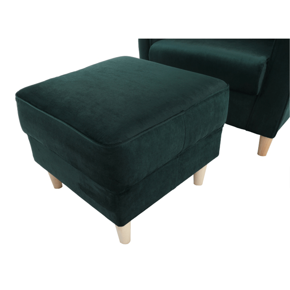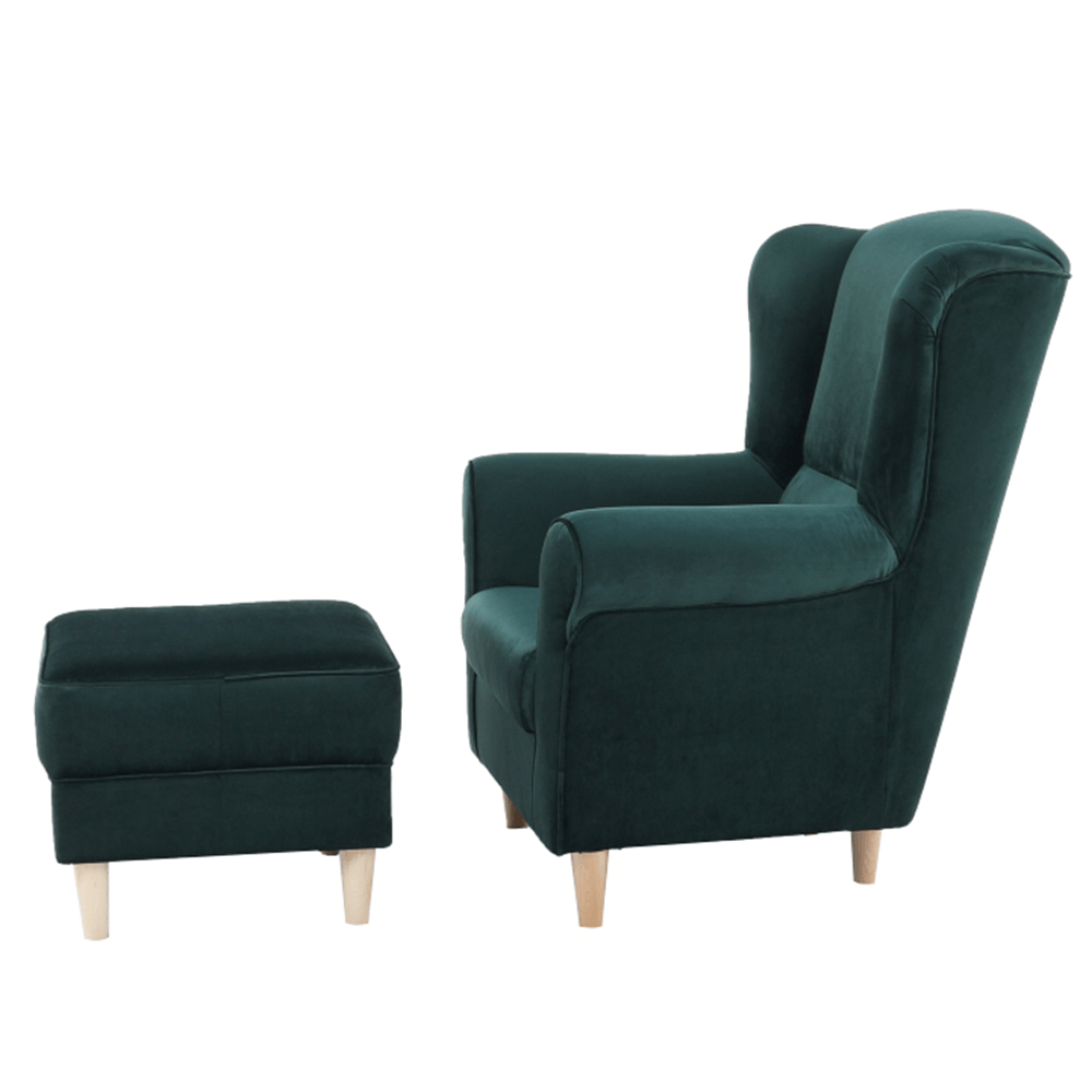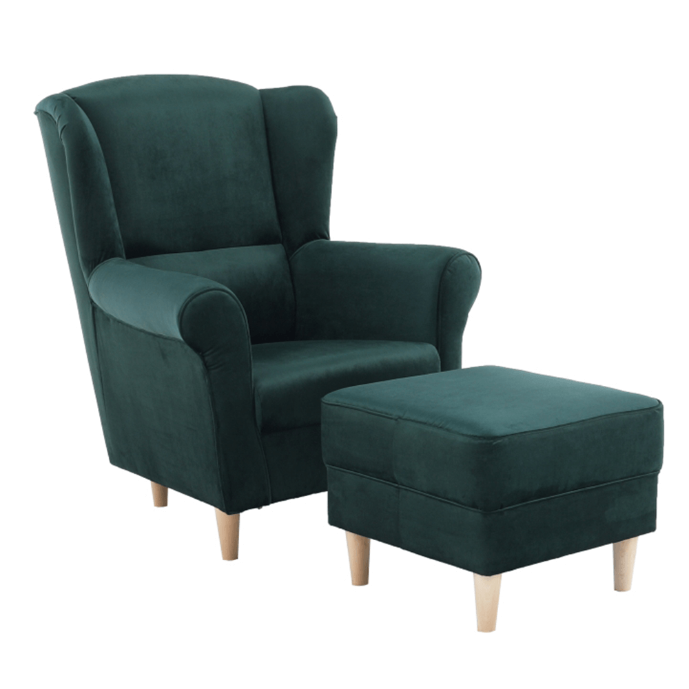 Kreslo ušiak s taburetom, látka smaragdová, ASTRID