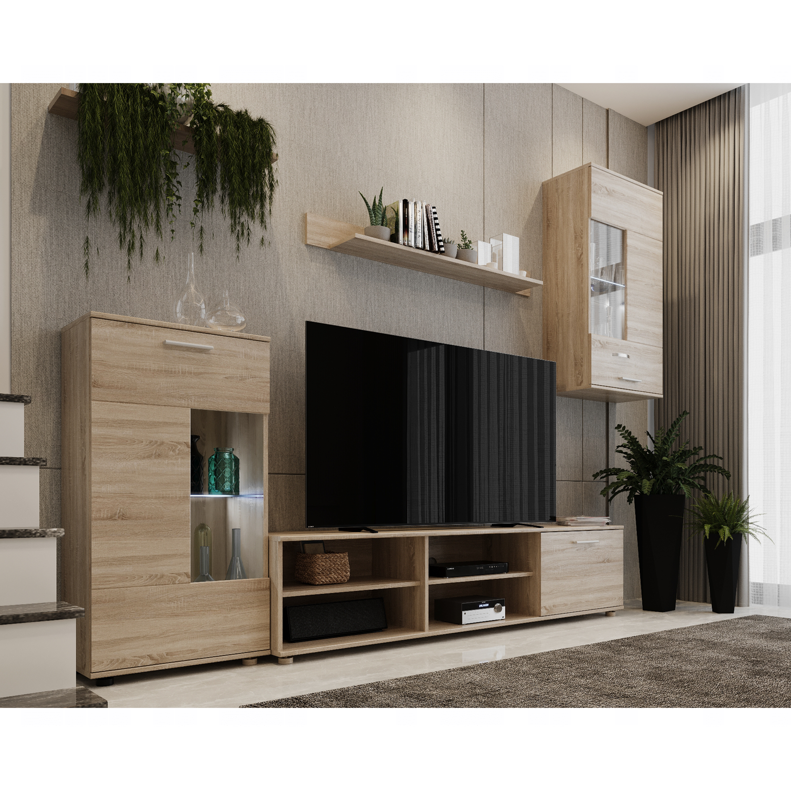 Obývacia stena, dub sonoma, DTD fóliovaná, FRONTAL 1 NEW