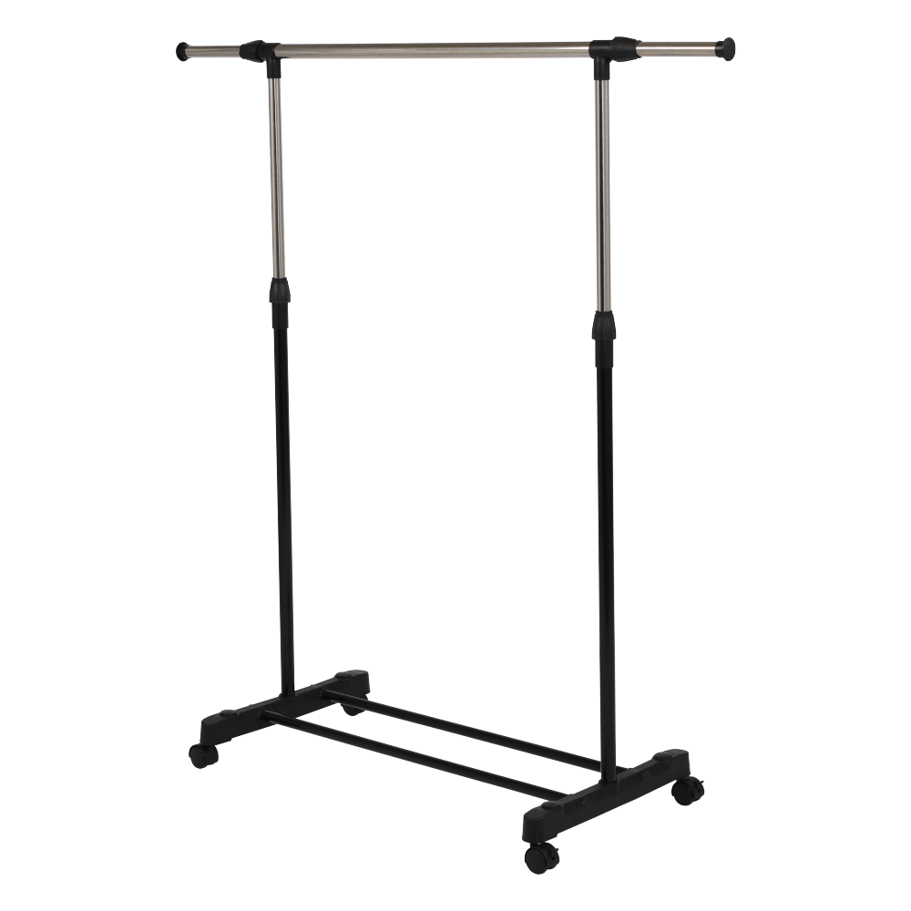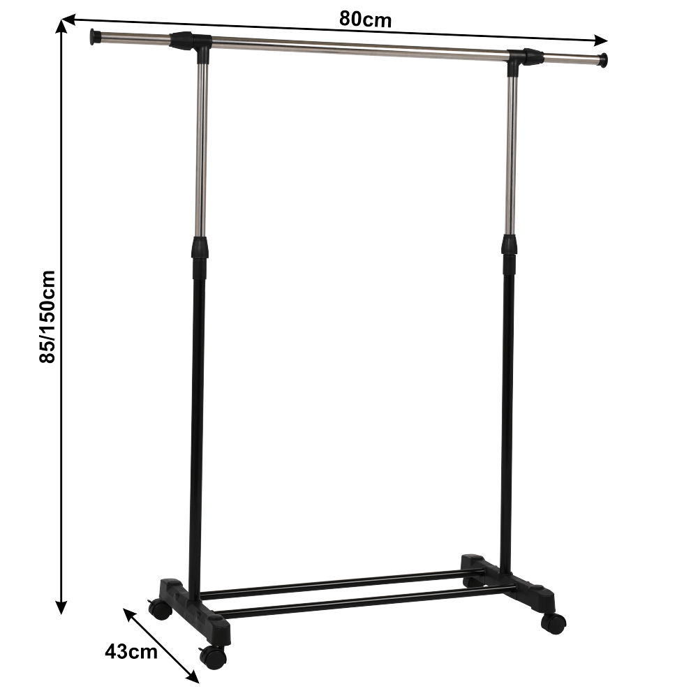 Pojazdný vešiak s kolieskami a jednou závesnou výškovo nastaviteľnou tyčou