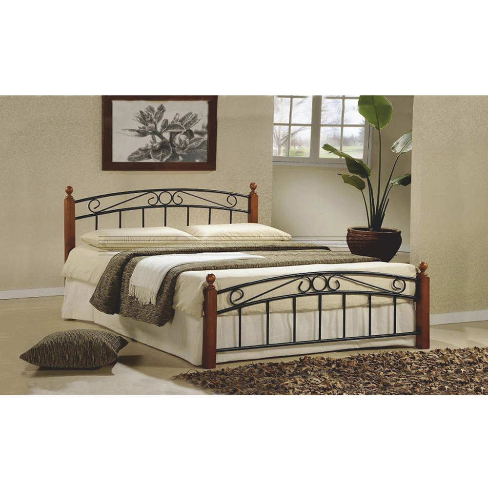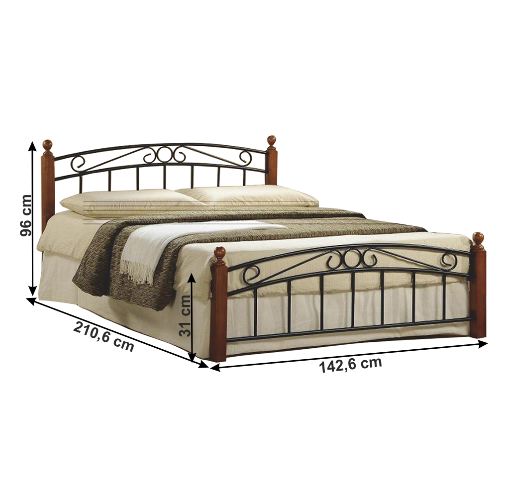 Posteľ, drevo čerešňa/čierny kov, 140×200, DOLORES