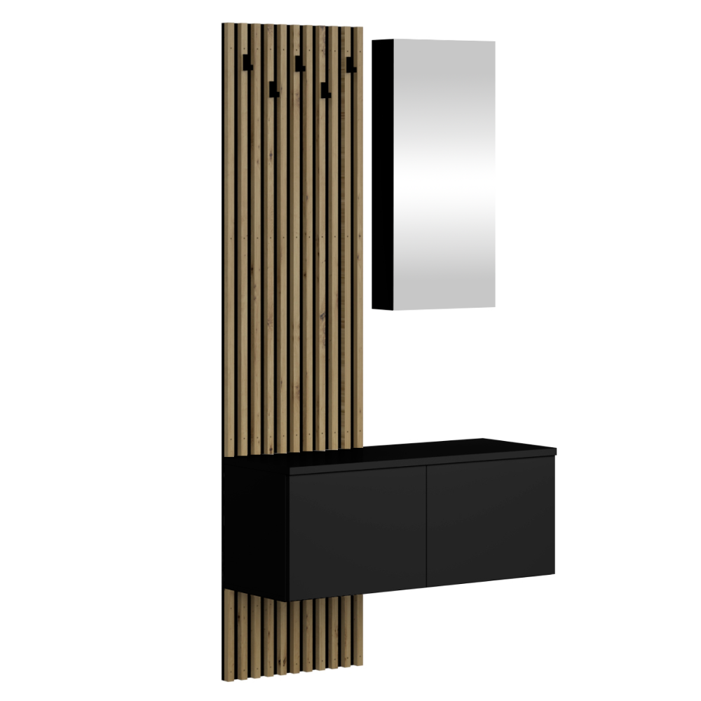 Predsieňová zostava, čierna/dub artisan, REBEKA