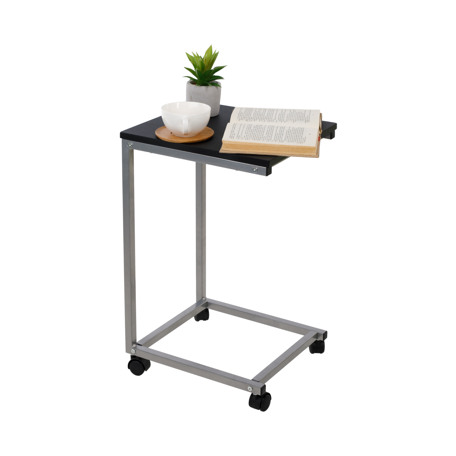 Príručný stolík, čierna/kov strieborná, MANNY
