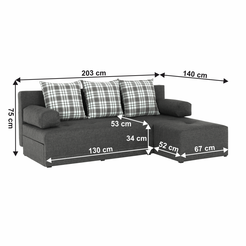 Rozmery: ŠxHxV: 203x140x75 cm, plocha na spanie: ŠxD: 127×203 cm