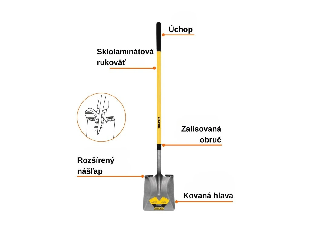 TRUPER – Kovaná lopata PCL-F: Sklolaminátová rukoväť
