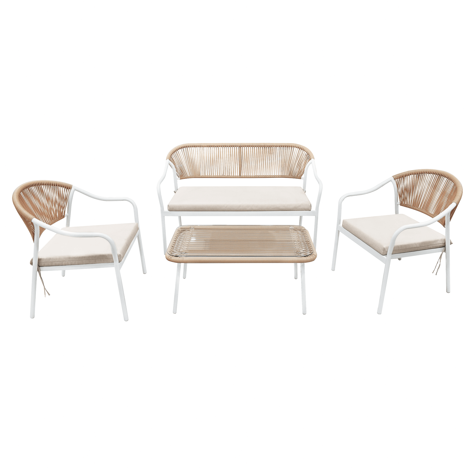 Záhradný 4-dielny ratanový set, biela/béžová, PALNY