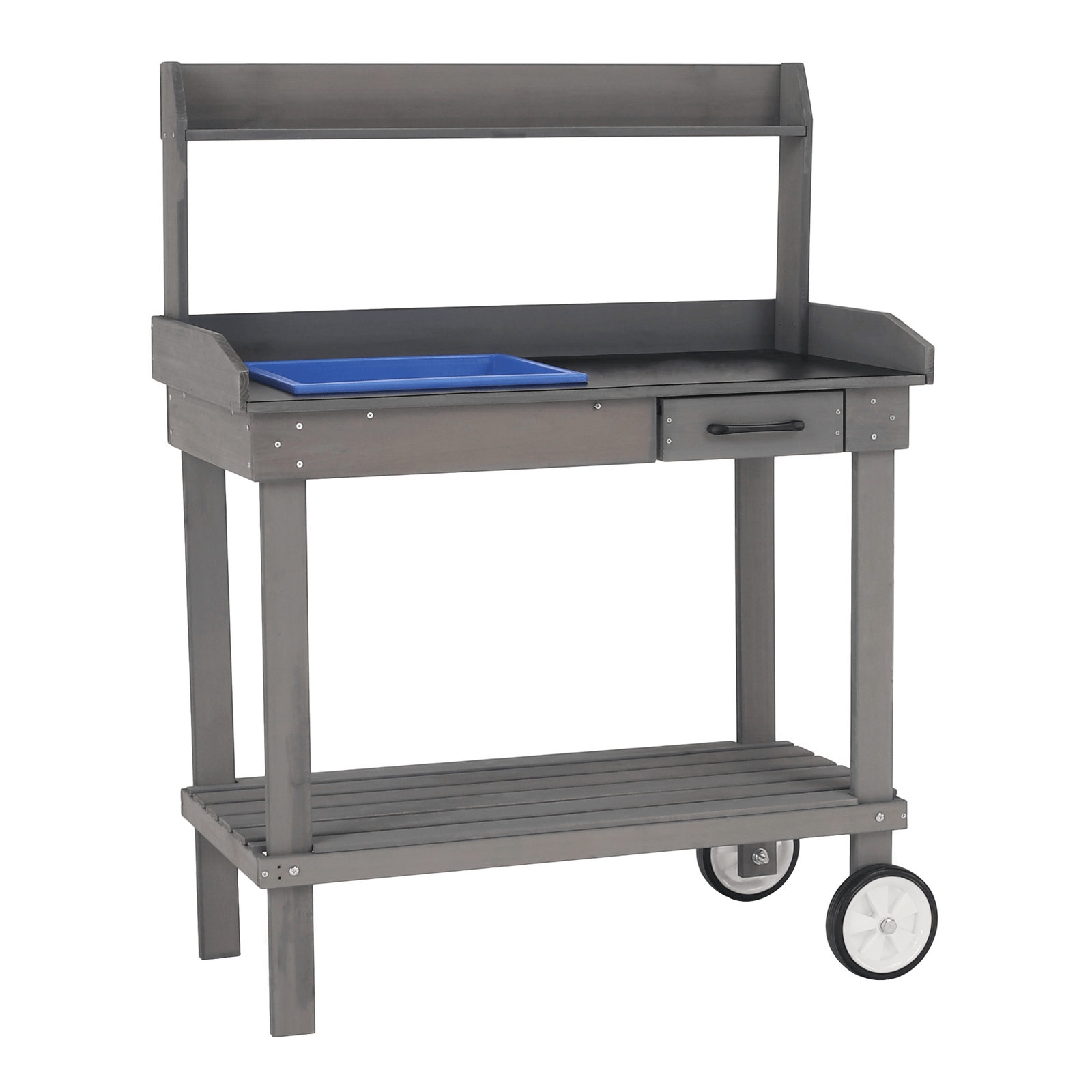 Záhradný pracovný stôl s umývadlom, drevo/sivá, BARDY